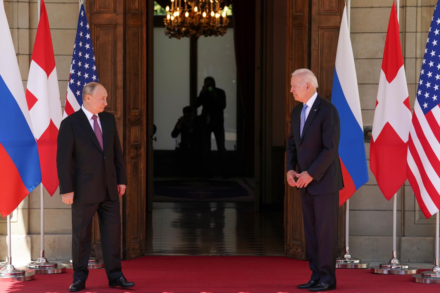 US President Joe Biden (right) and Russia President Vladimir Putin in Geneva on June 16 for the US-Russia summit.