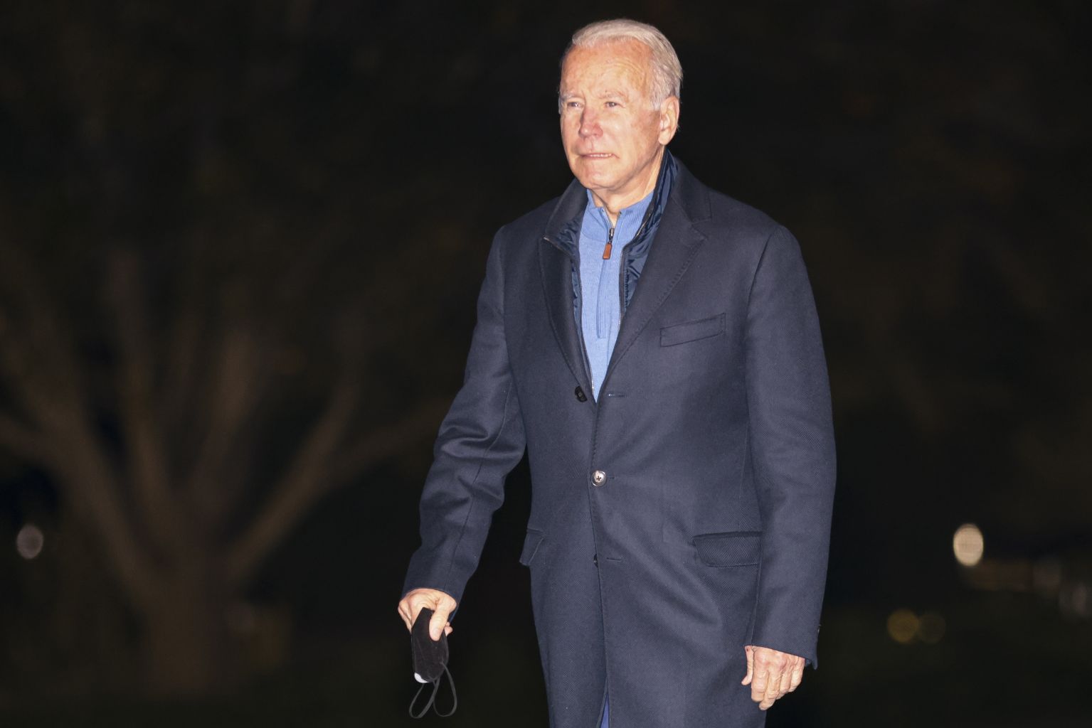 Joe Biden walks from Marine One after arriving on the South Lawn of the White House in Washington, DC, on Nov 3, 2021.