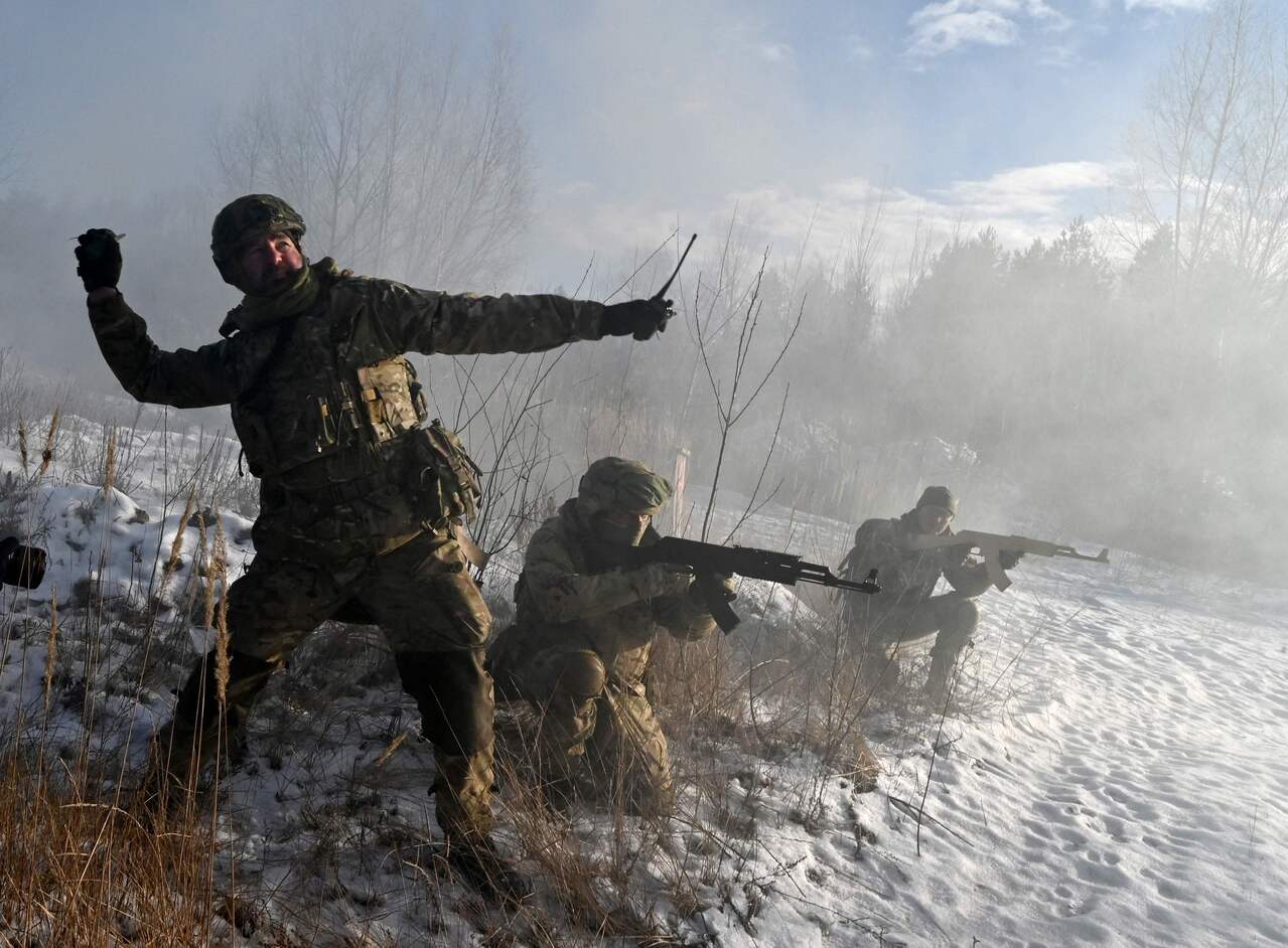 Ukrainian Territorial Defence Forces take part in a military exercise near Kiev, Ukraine, on Dec 25, 2021.