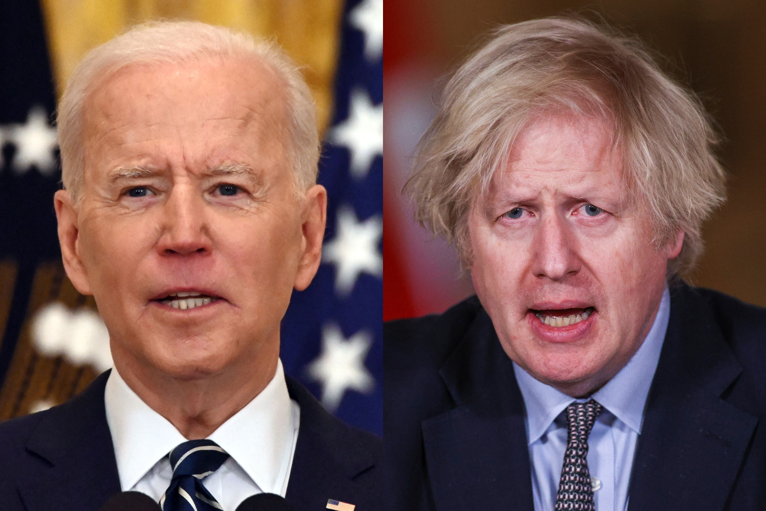 US President Joe Biden (left) spoke to British Prime Minister Boris Johnson in a phone call on March 26, 2021.