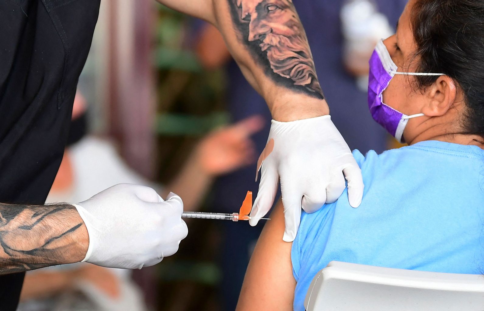 An East Los Angeles resident in the US gets a shot of Pfizer's coronavirus vaccine on July 9, 2021.