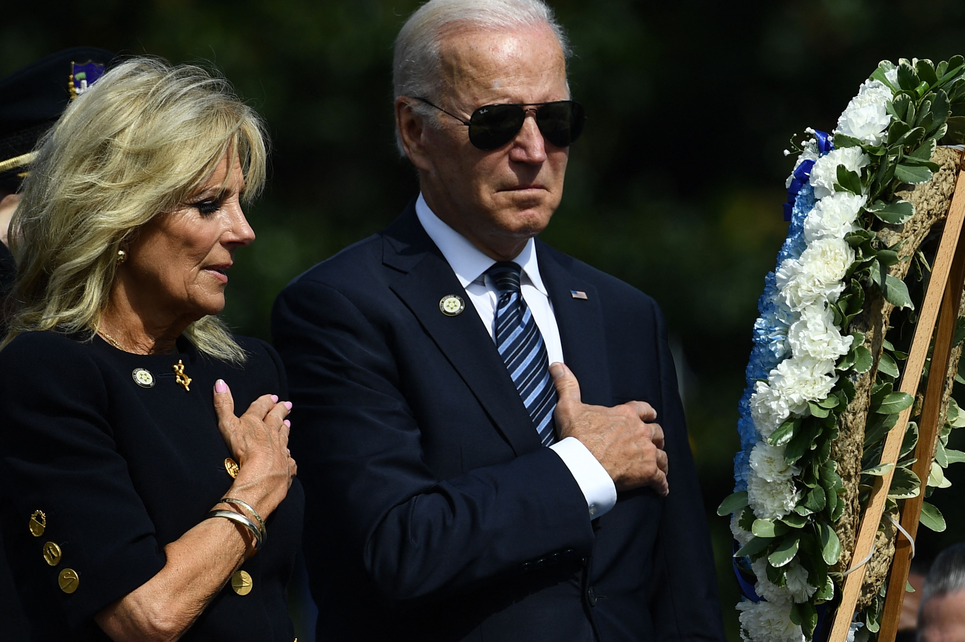 US President Joe Biden and First Lady Jill Biden at a memorial service for law enforcement officers who died at work in 2019 and 2020 at the US Captiol in Washington on Oct 16, 2021.