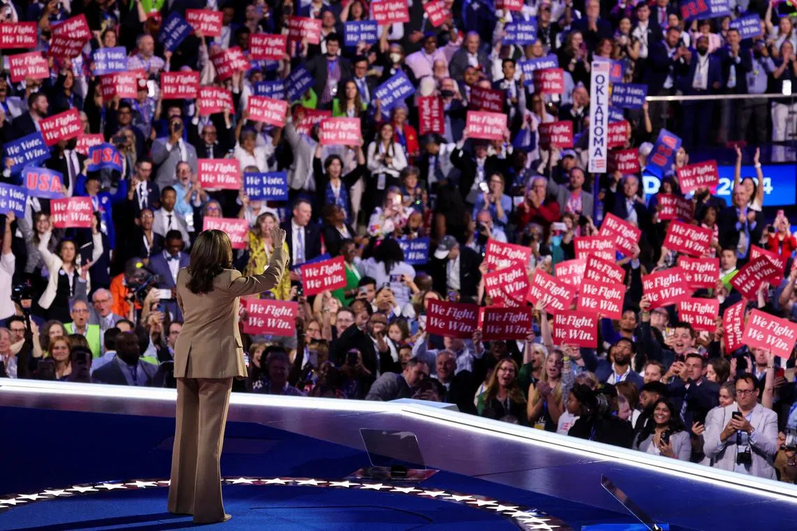 US Vice-President Kamala Harris at the Democratic National Convention in Chicago, Illinois, on Aug 19, 2024.