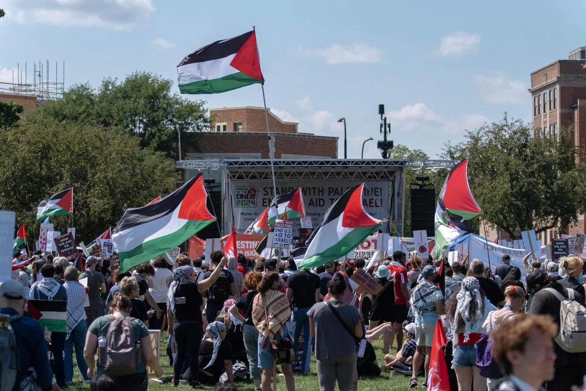 Unlike most speakers earlier in the programme, Mr Biden acknowledged the anger of thousands of pro-Palestinian protesters that gathered outside the convention hall on Aug 19, saying he has been working non-stop to achieve a ceasefire.