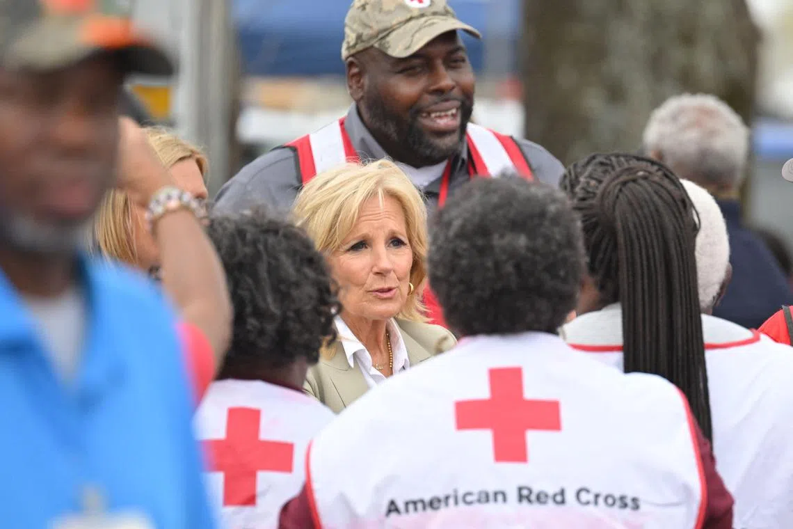 First Lady Jill Biden meets American Red Cross volunteers, in Rolling Fork, Mississippi.