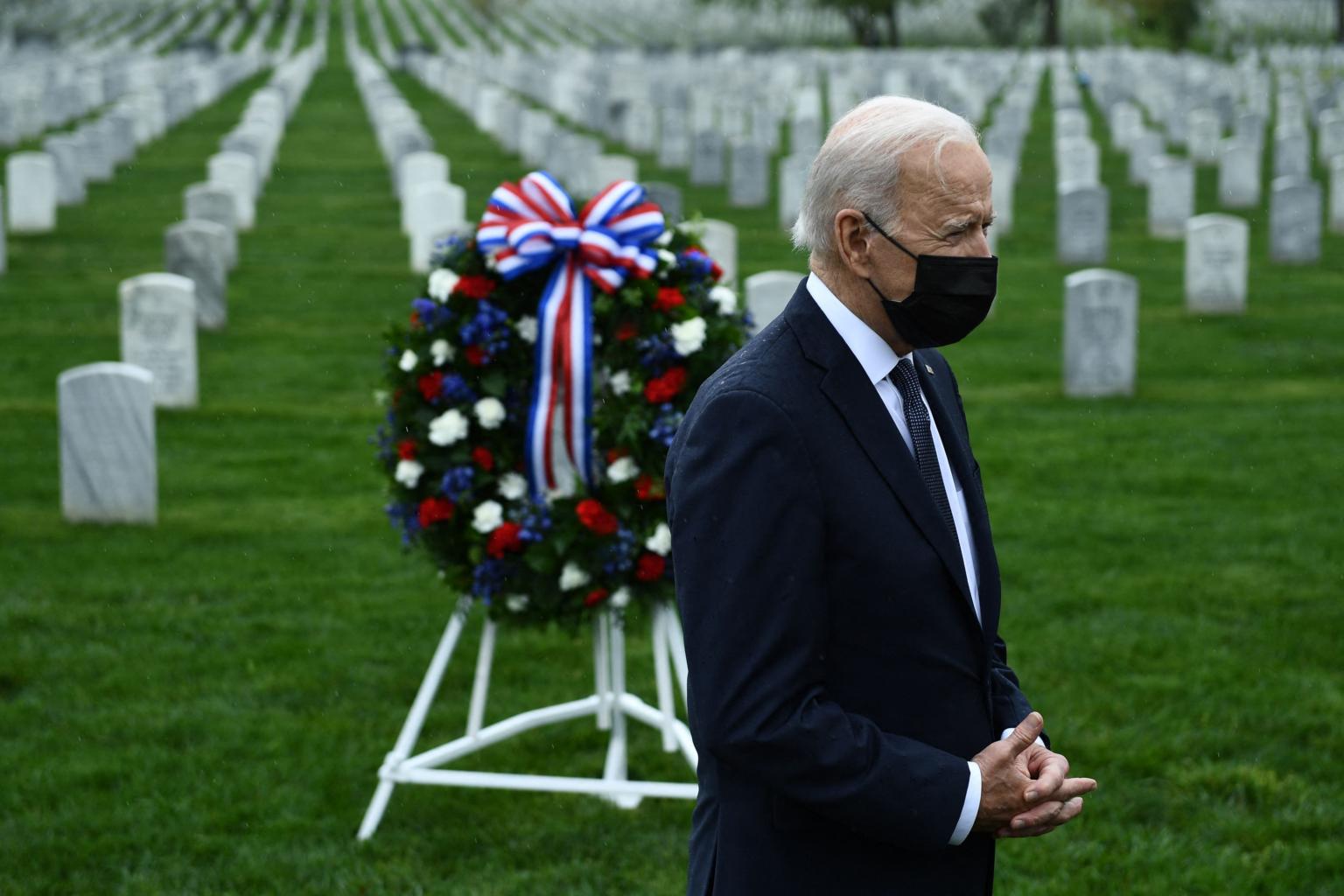 US President Joe Biden at Arlington National cemetary to honour fallen veterans of Afghan conflict on April 14, 2021.