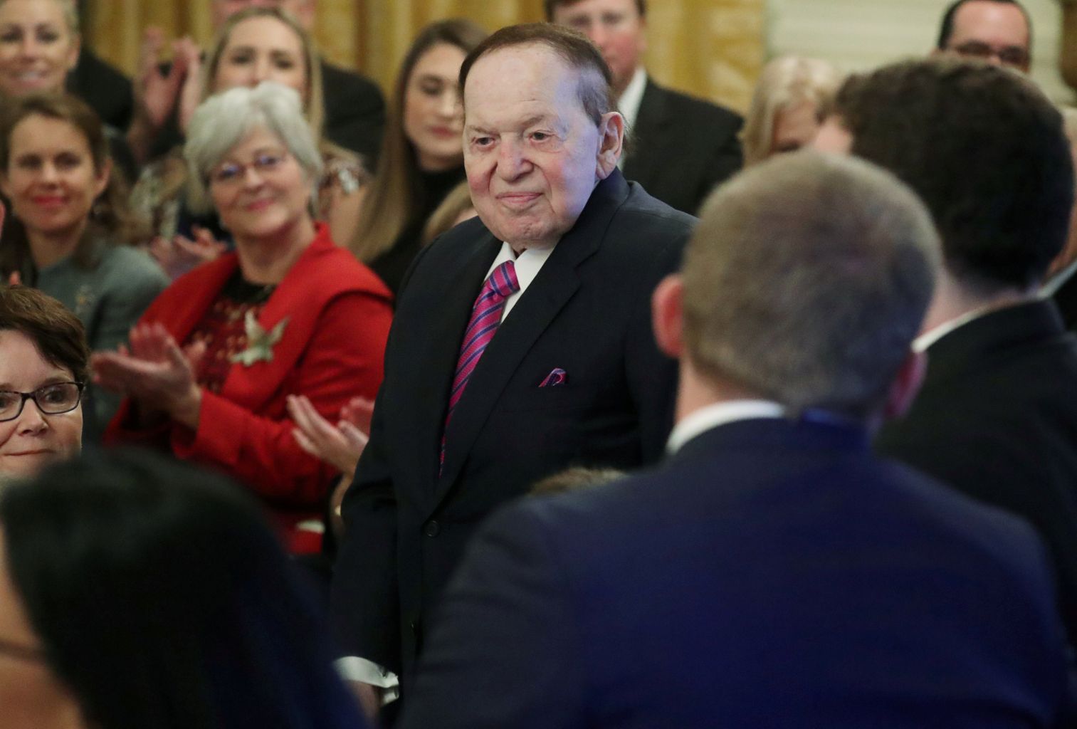 Sheldon Adelson (above, in November 2018) reportedly has not been at his company’s offices in Las Vegas since around Christmas Day.