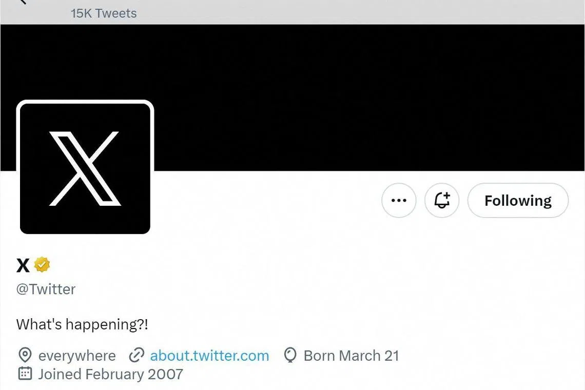 Twitter’s official page with an “X” on the profile image is seen on July 23, 2023.