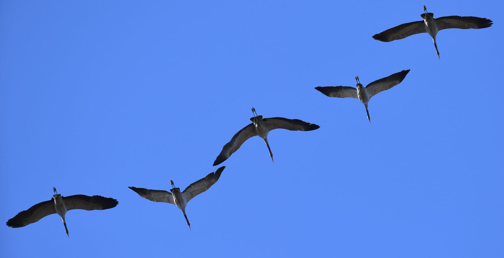 Cranes fly over the village of Altefaehr on the Baltic Sea island of Ruegen, northwestern Germany, on Oct 6, 2017.