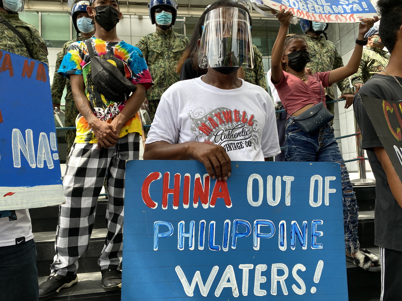 Filipino protesters demonstrating outside the Chinese consular office in Manila on July 12, 2021.