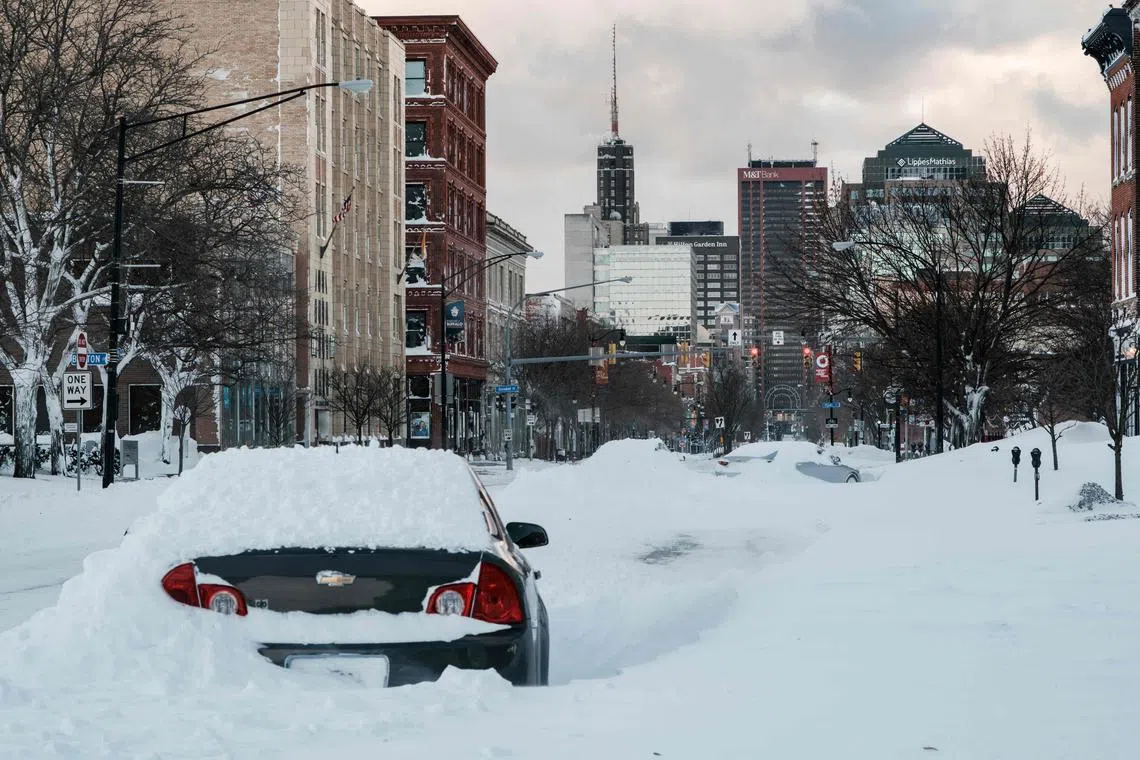 An abandoned vehicle is left under heavy snow along a street in Buffalo, New York, on Dec 25, 2022.