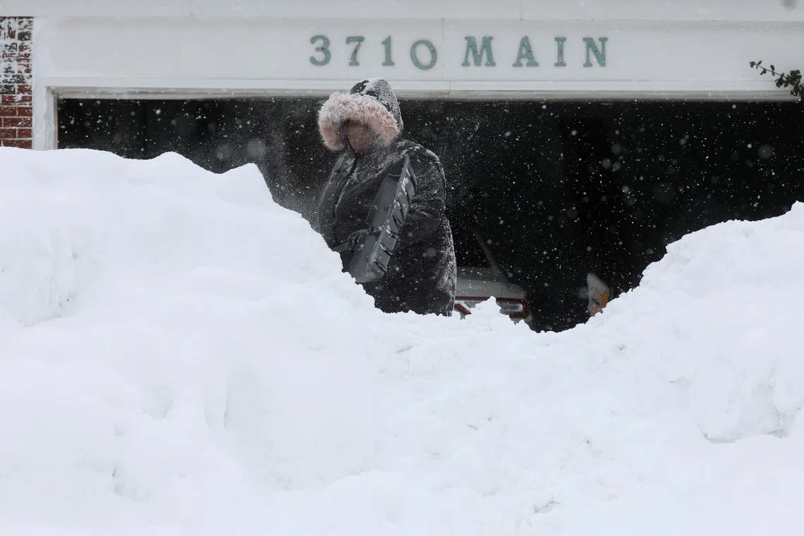 A woman clears snow from her driveway following a winter storm that hit the Buffalo region on Dec 26, 2022.