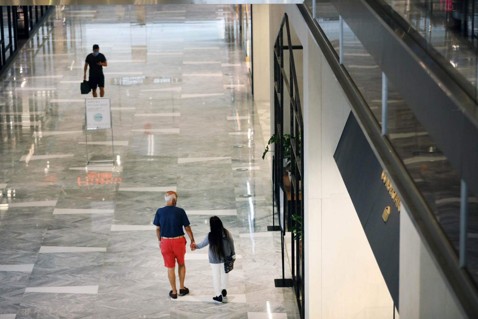 People walk through a mall on the first day of the reopening of malls to the public in New York on Sept 9, 2020.