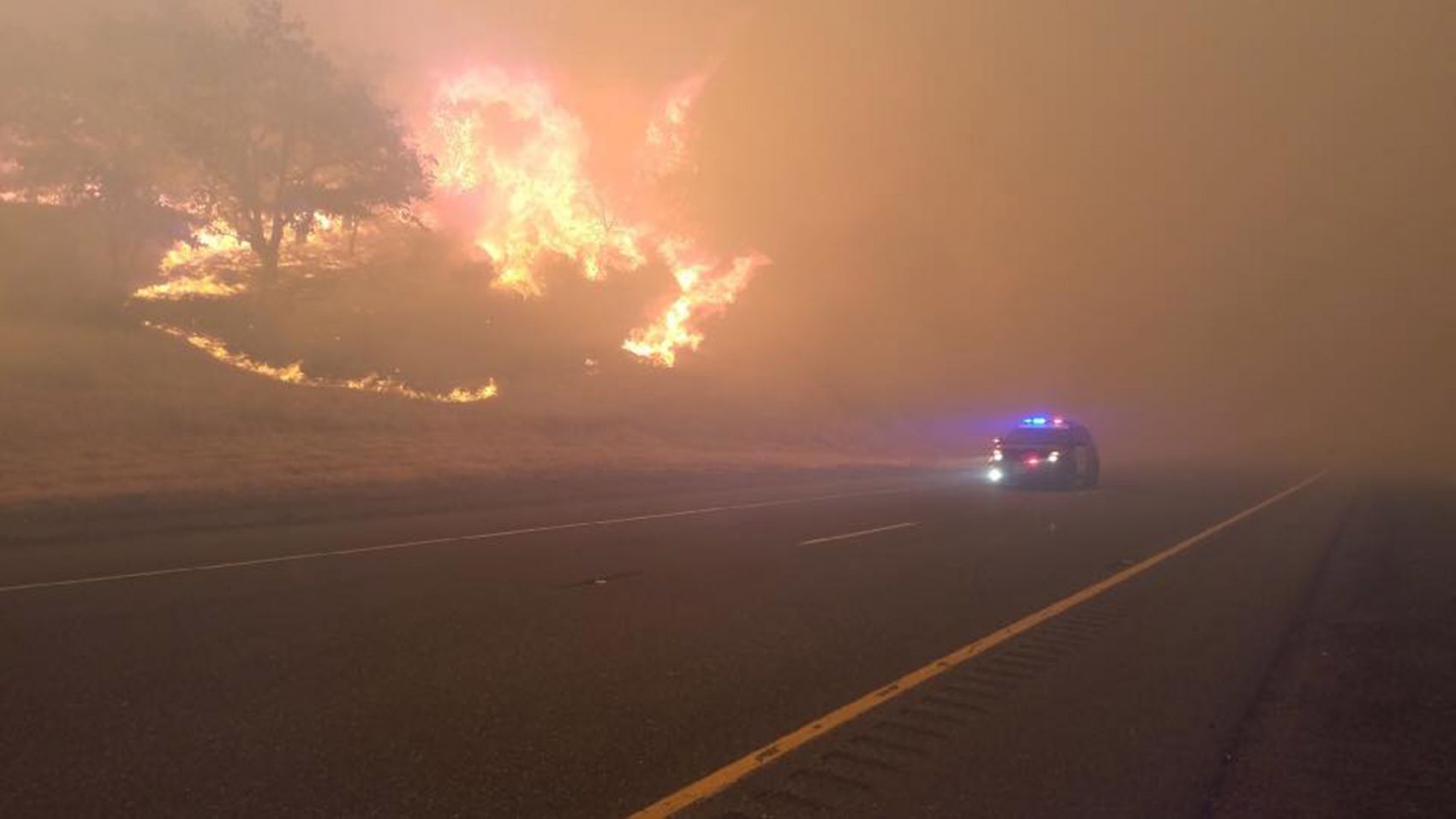 A California Highway Patrol handout photo shows the the Klamathon Fire in Hornbrook, California, July 6, 2018.