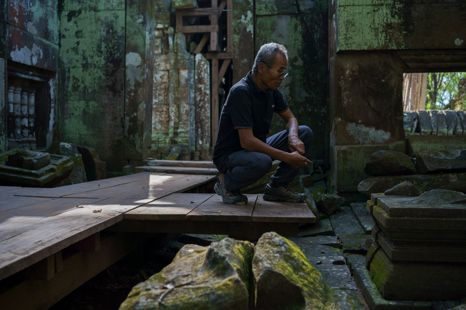 Mr Toek Tik, a reformed looter, at the Koh Ker temple complex in Preah Vihear in northern Cambodia last year.