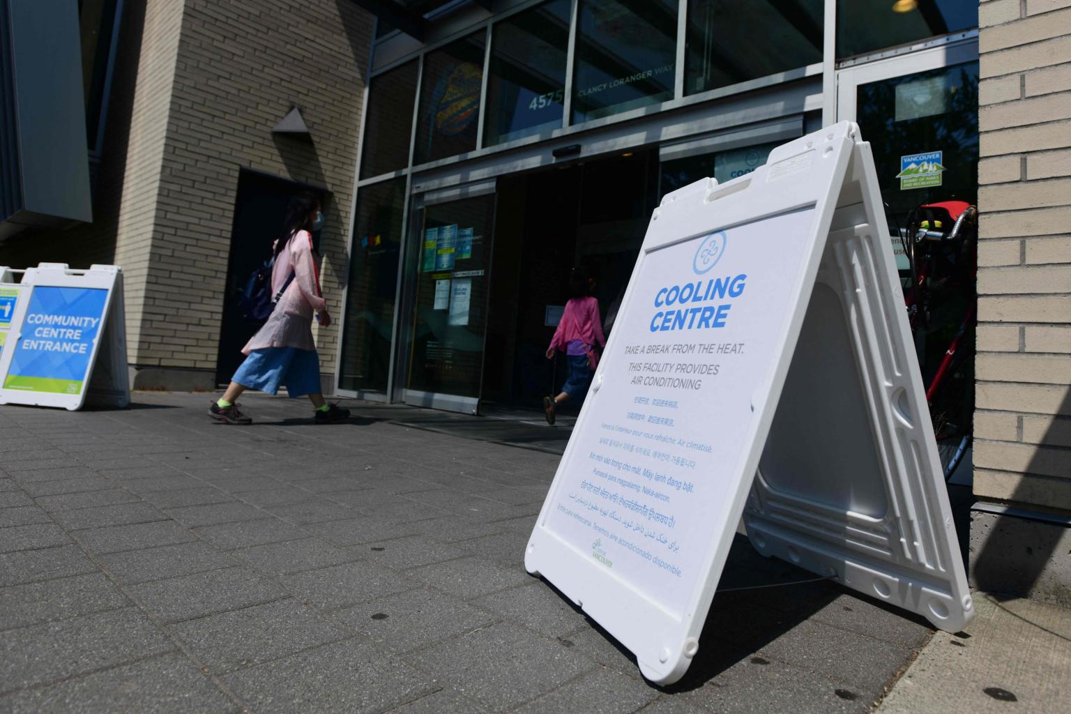 People enter the Hillcrest Community Centre where they can cool off during the extreme hot weather in Vancouver on June 30, 2021.