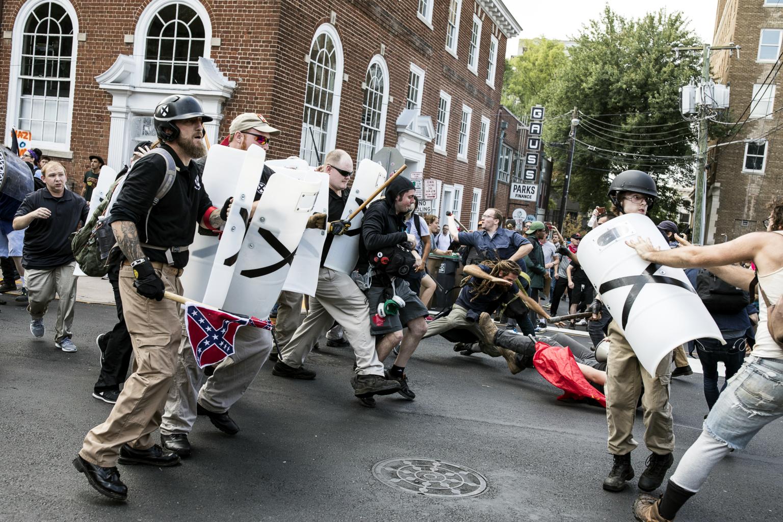 White nationalists and counter protesters clash on the streets of Charlottesville on Aug 12, 2017.