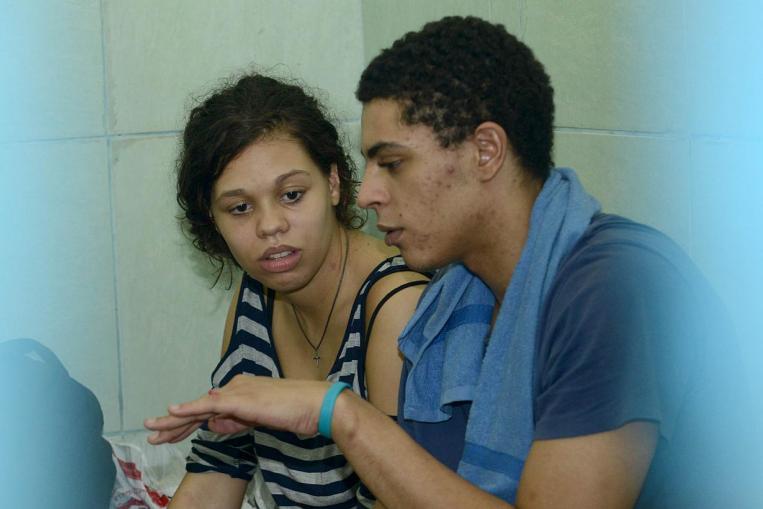 Heather Mack (left) of the US speaks with her boyfriend Tommy Schaefer (right) inside a holding cell at the procecutor's office in Denpasar on Indonesia's resort island of Bali on Dec 8, 2014.