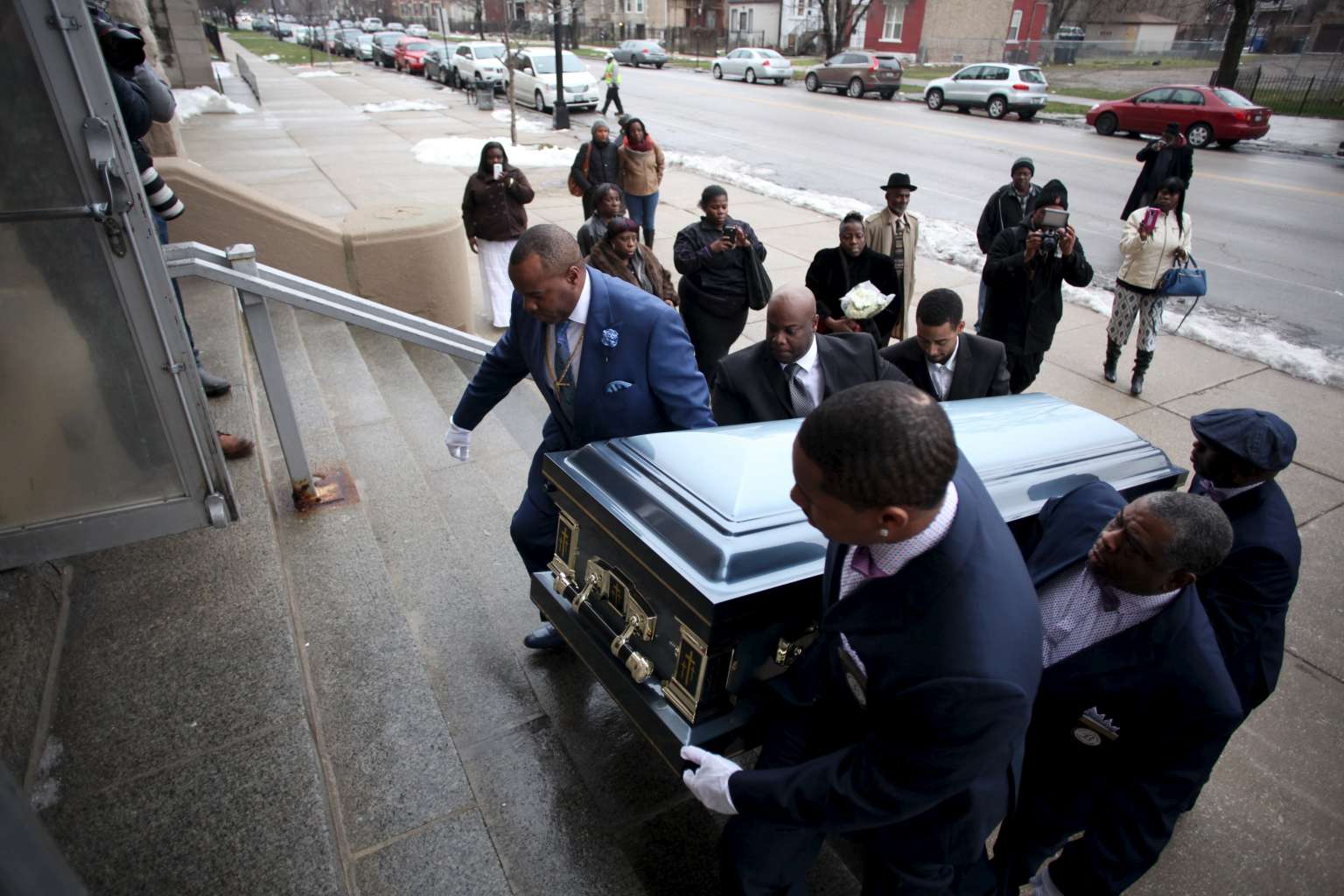 Pallbearers carry the casket of Quintonio LeGrier during his funeral in Chicago, Illinois, on Jan 9, 2016.
