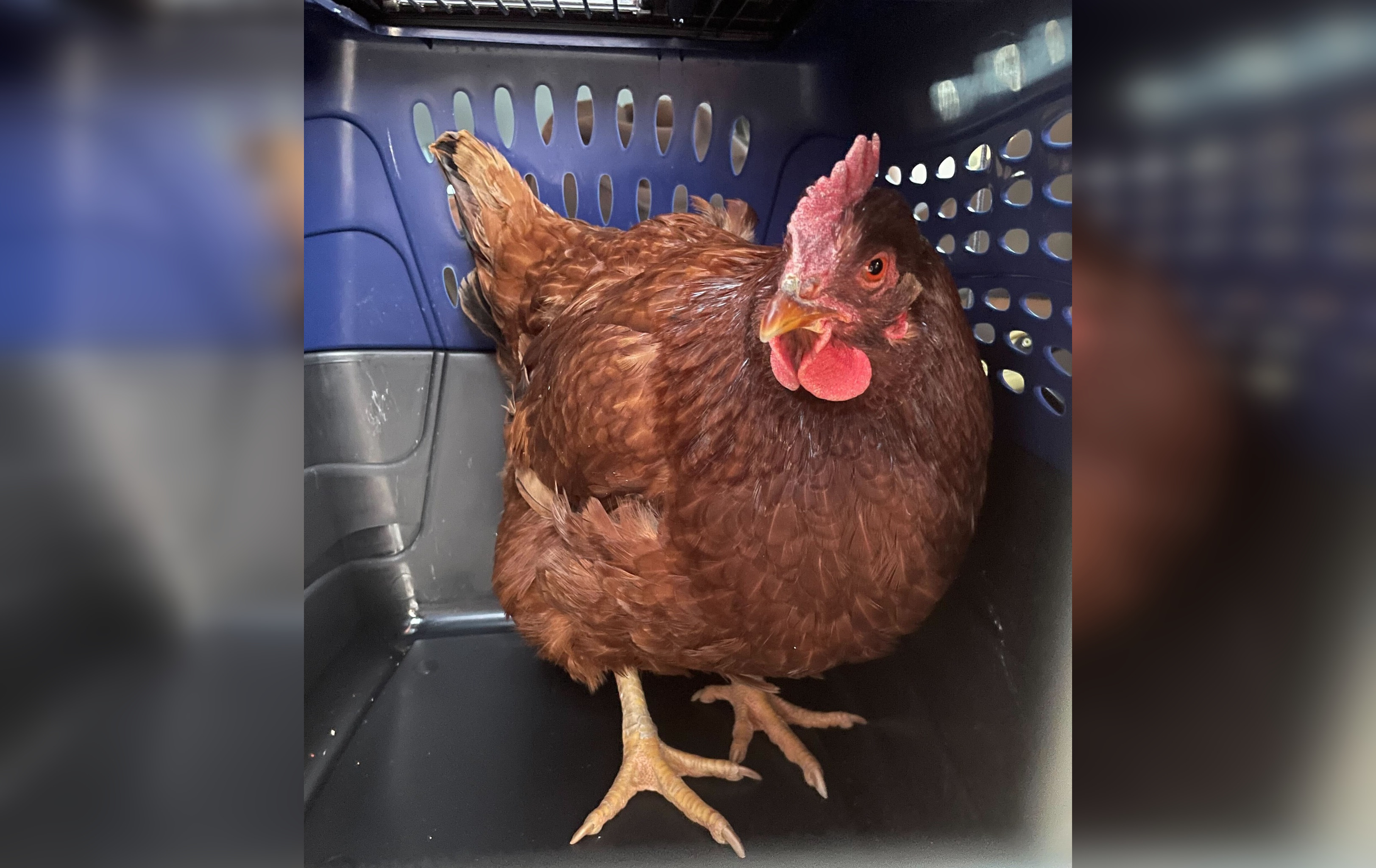 "Sgt Balaena brought her safely to the shelter where she'll stay until we find a new home for her!" the organisation said, posting a picture of the brown-feathered hen in a plastic carrying cage.