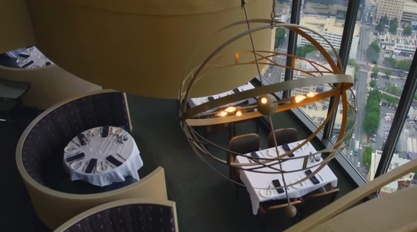 A overhead view of the Sun Dial restaurant in Atlanta, which revolves to make the most of the city's views.
