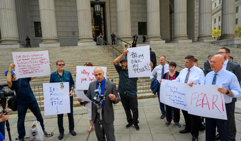 Protesters call on the Archdiocese of New York, Diocese of Brooklyn and Diocese of Rockville Centre to help survivors of clergy sexual abuse in New York on Aug 14, 2019.