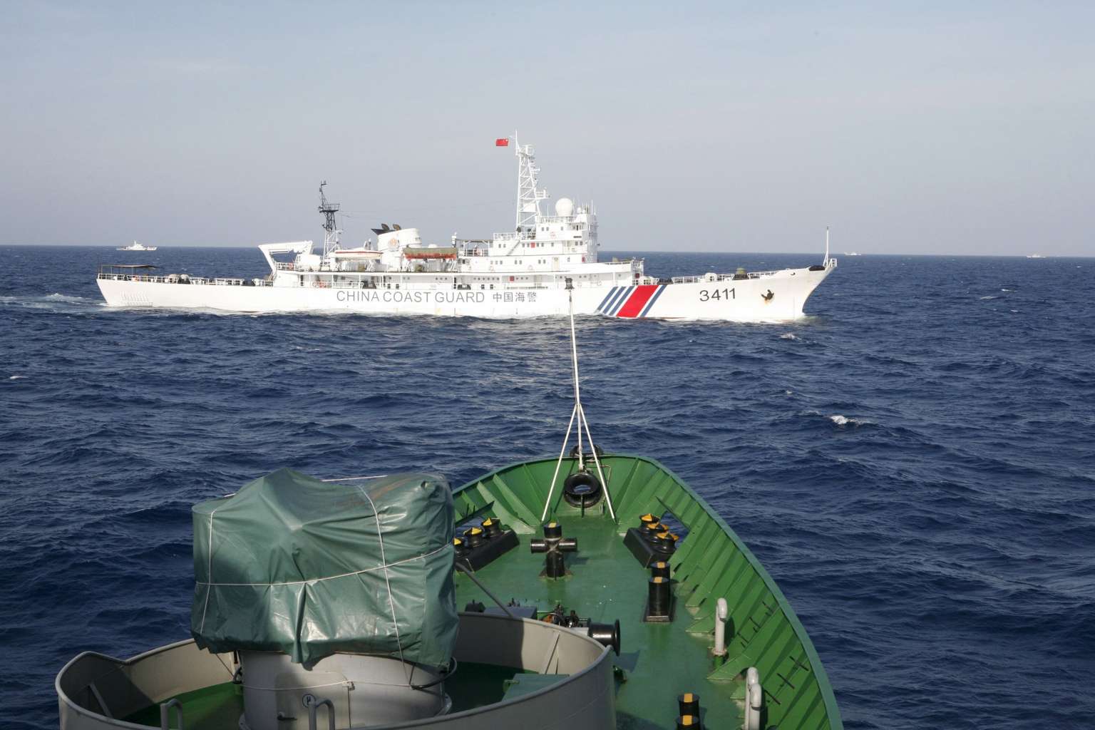 A Chinese Coast Guard ship (top) is seen near a Vietnam Marine Guard ship in the South China Sea, about 210km off shore of Vietnam, in this May 14, 2014 file photo.
