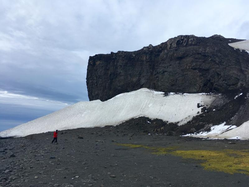 A scientist walks on a beach on Fildes peninsula, King George Island, Antarctica on Feb 1, 2018.