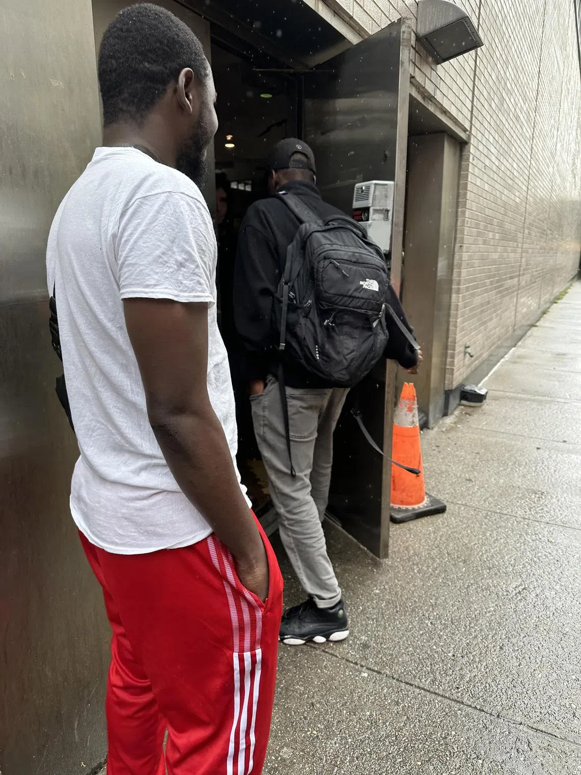 Two men from Conakry, the capital of the West African nation of Guinea, who said they were sheltering at the old New York Police Academy. Without work permits, they are unable to find jobs.