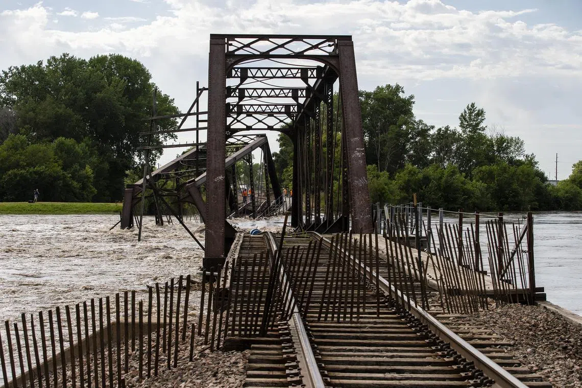As heat and flooding scorched and scoured the Midwest, a steel railroad bridge connecting Iowa with South Dakota collapsed under surging waters