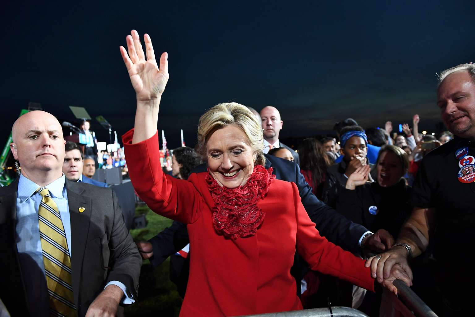 US Democratic presidential candidate Hillary Clinton waving to supporters during a rally in Cincinnati, Ohio, on Oct 31, 2016.