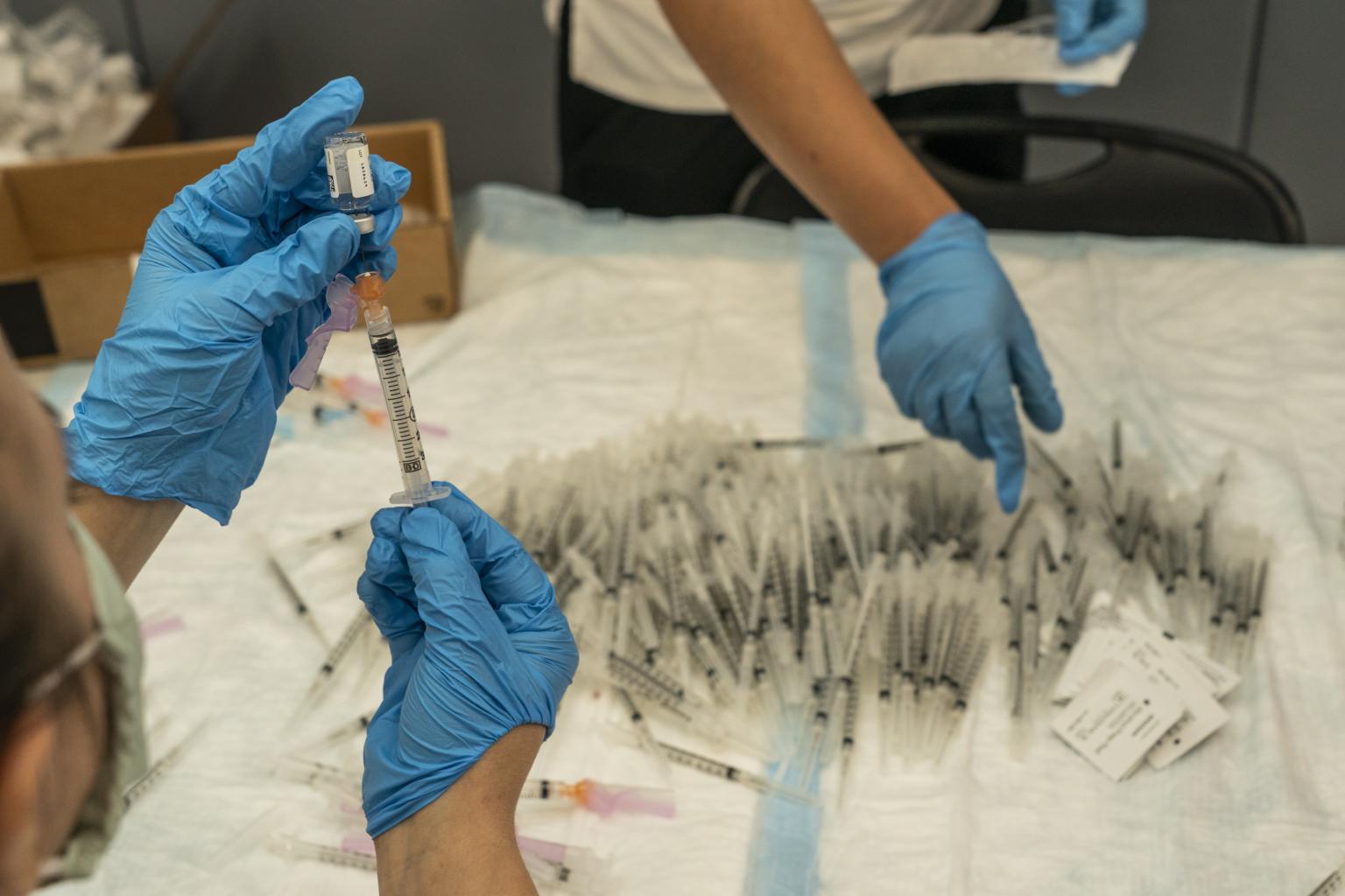 Healthcare workers prepare Johnson & Johnson coronavirus vaccines in Houston on March 29, 2021.