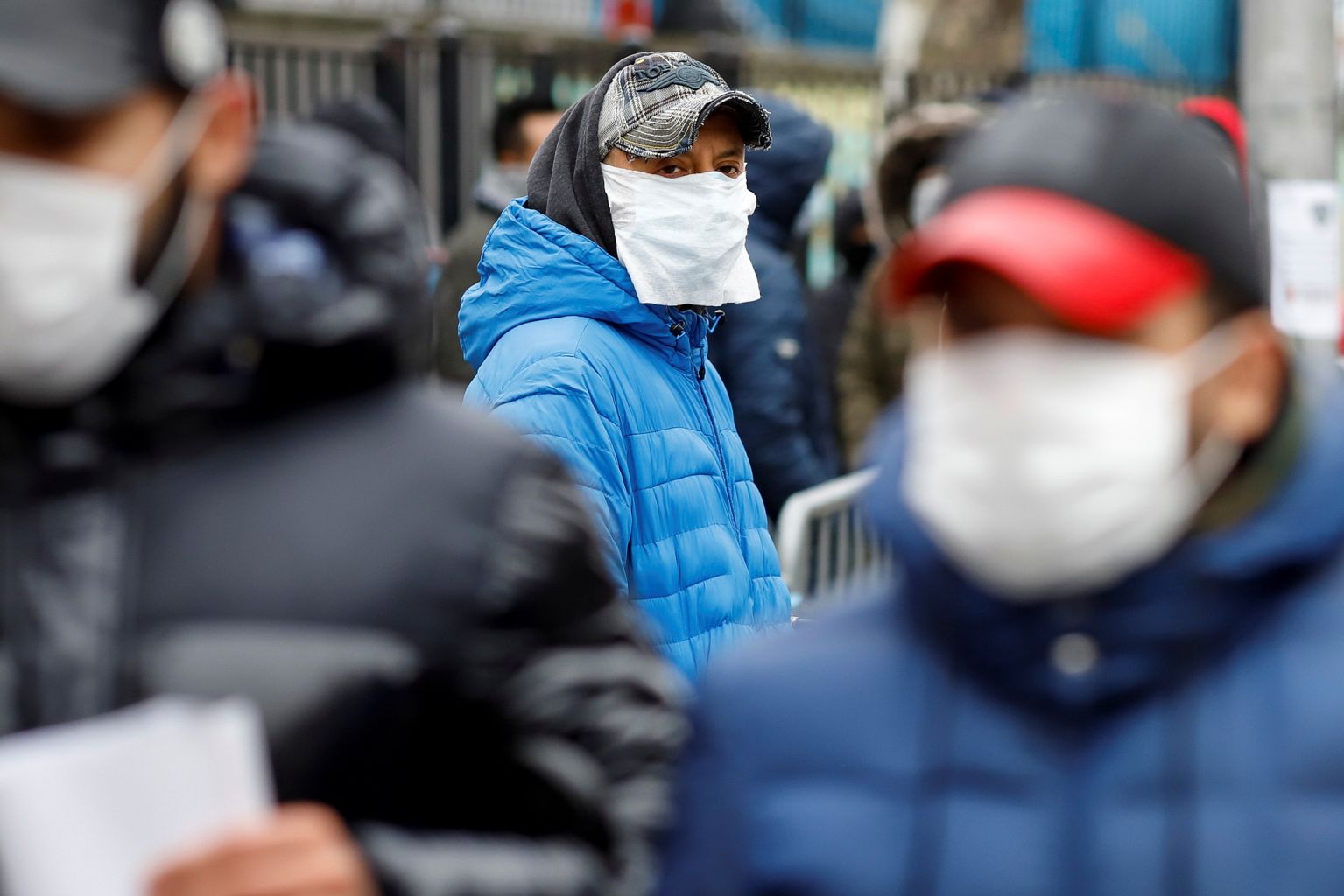People wait to be tested for coronavirus in the Queens borough of New York City, March 25, 2020.