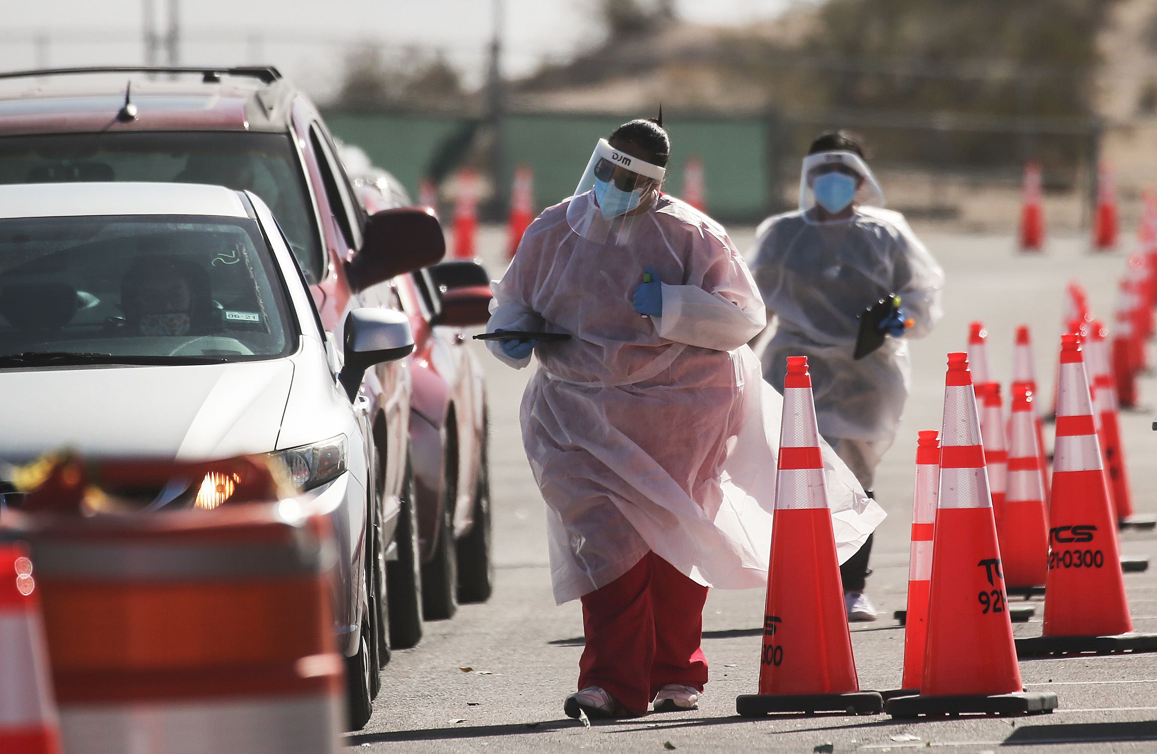 Frontline healthcare workers test people for Covid-19 at a drive-in testing site in El Paso, Texas, on Nov 14, 2020.