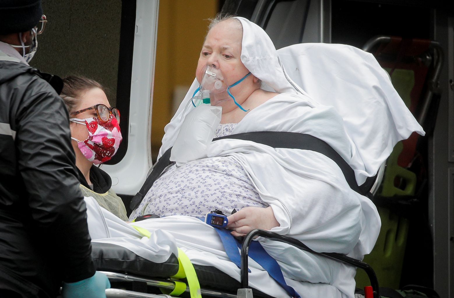 Paramedics unload a patient at a hospital in the New York borough of Brooklyn on April 24, 2020.