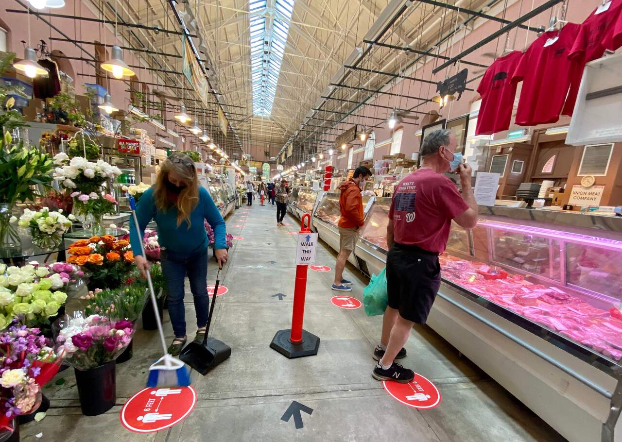 Shoppers observing safe distancing at Eastern Market in Washington DC, on May 17, 2020.