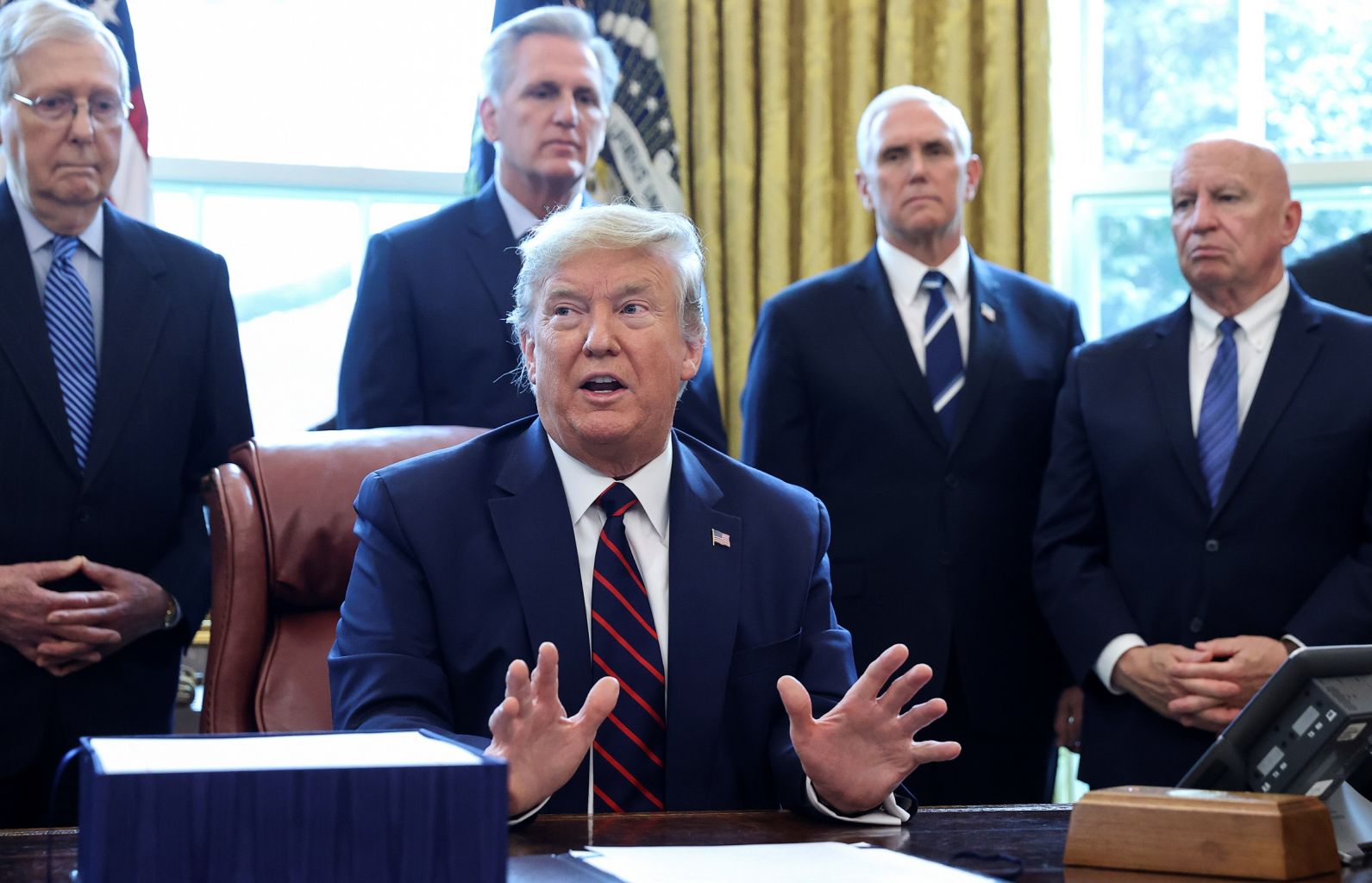Trump speaks during a signing ceremony for a US$2.2 trillion coronavirus aid package Bill at the White House.