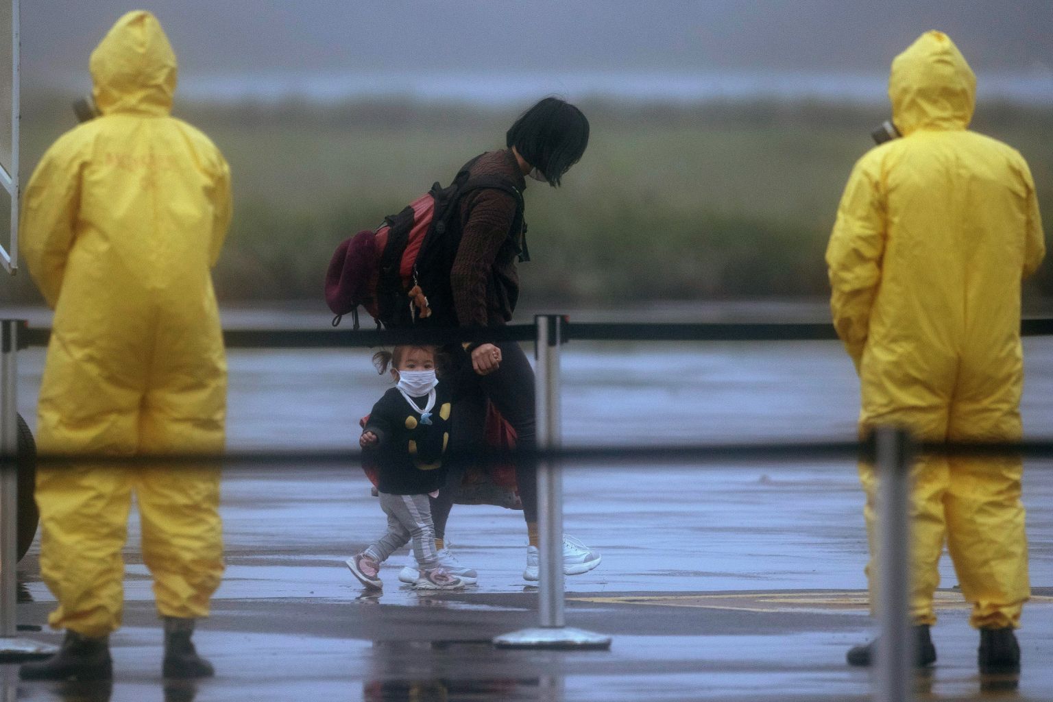 Passengers disembark flights chartered by the Brazilian government to bring Brazilian nationals along with their relatives from the coronavirus outbreak centre of Wuhan, Feb 9, 2020.