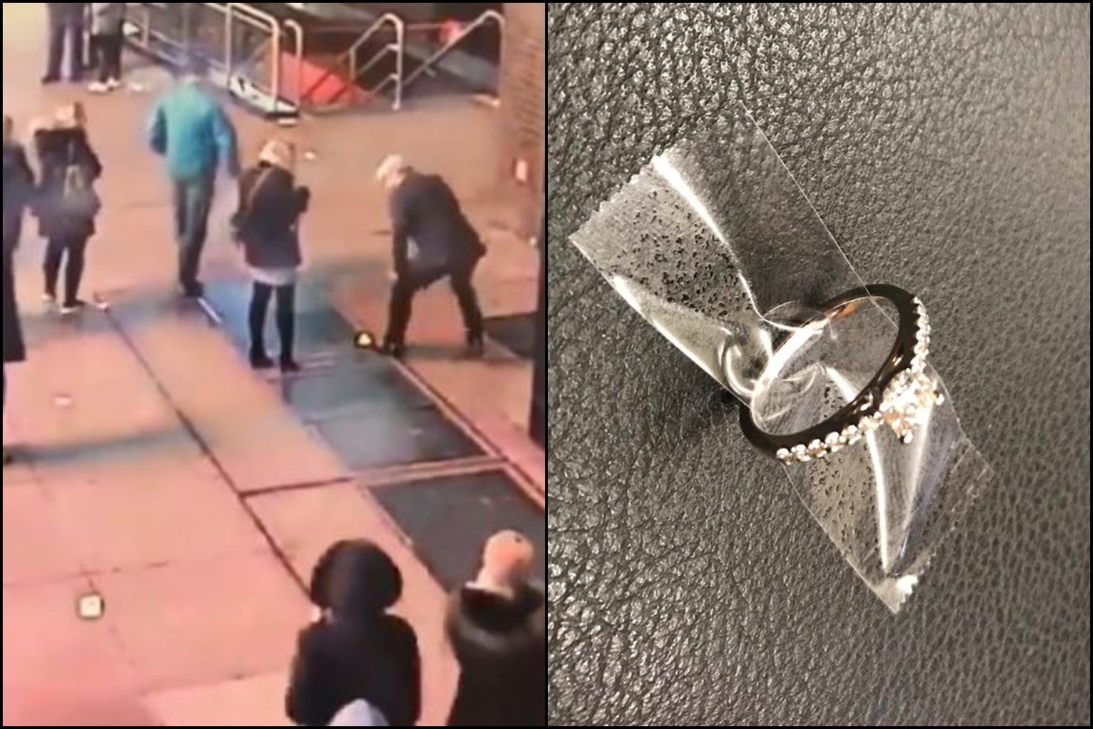 In what must have been a heart-stopping moment, the diamond ring fell right in between the gaps of a metal grate covering a drain in the pavement.