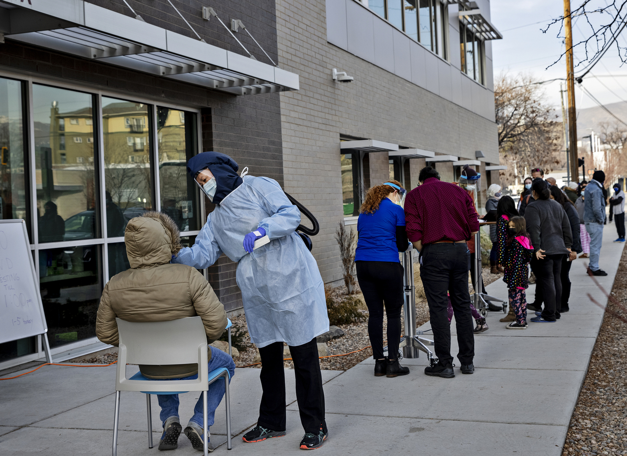 A Covid-19 testing site run by the county health department in Salt Lake City, Utah, on Jan 12, 2022.