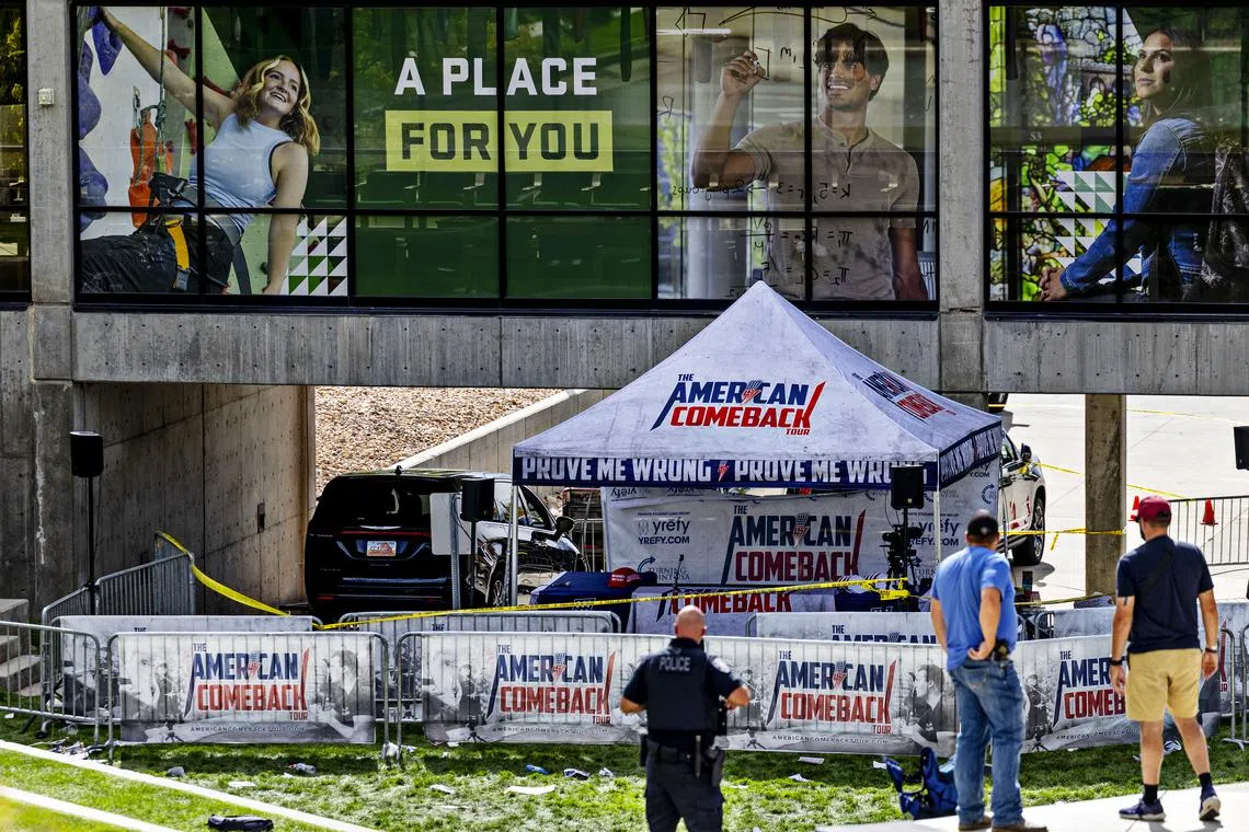 The tent where Mr Charlie Kirk was fatally shot while speaking during an event at Utah Valley University in Orem, Utah, on Sept 10.