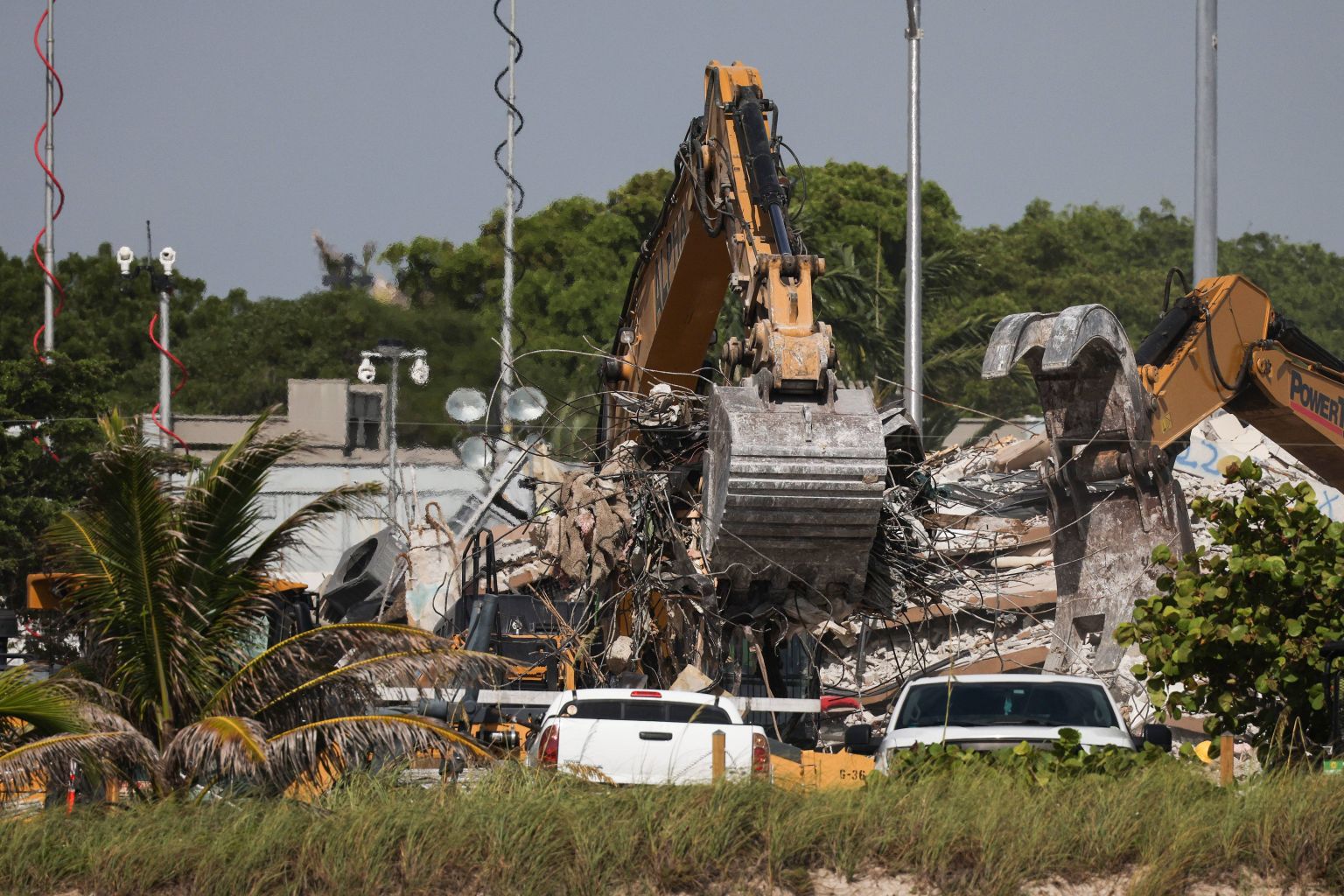 Excavators dig through the remains of the collapsed 12-storey Champlain Towers South condo building on July 9, 2021 in Surfside, Florida.