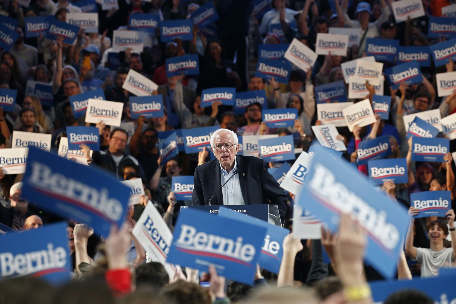 Democratic presidential candidate Bernie Sanders speaks at a rally inside the University of Houston on Feb 23, 2020.