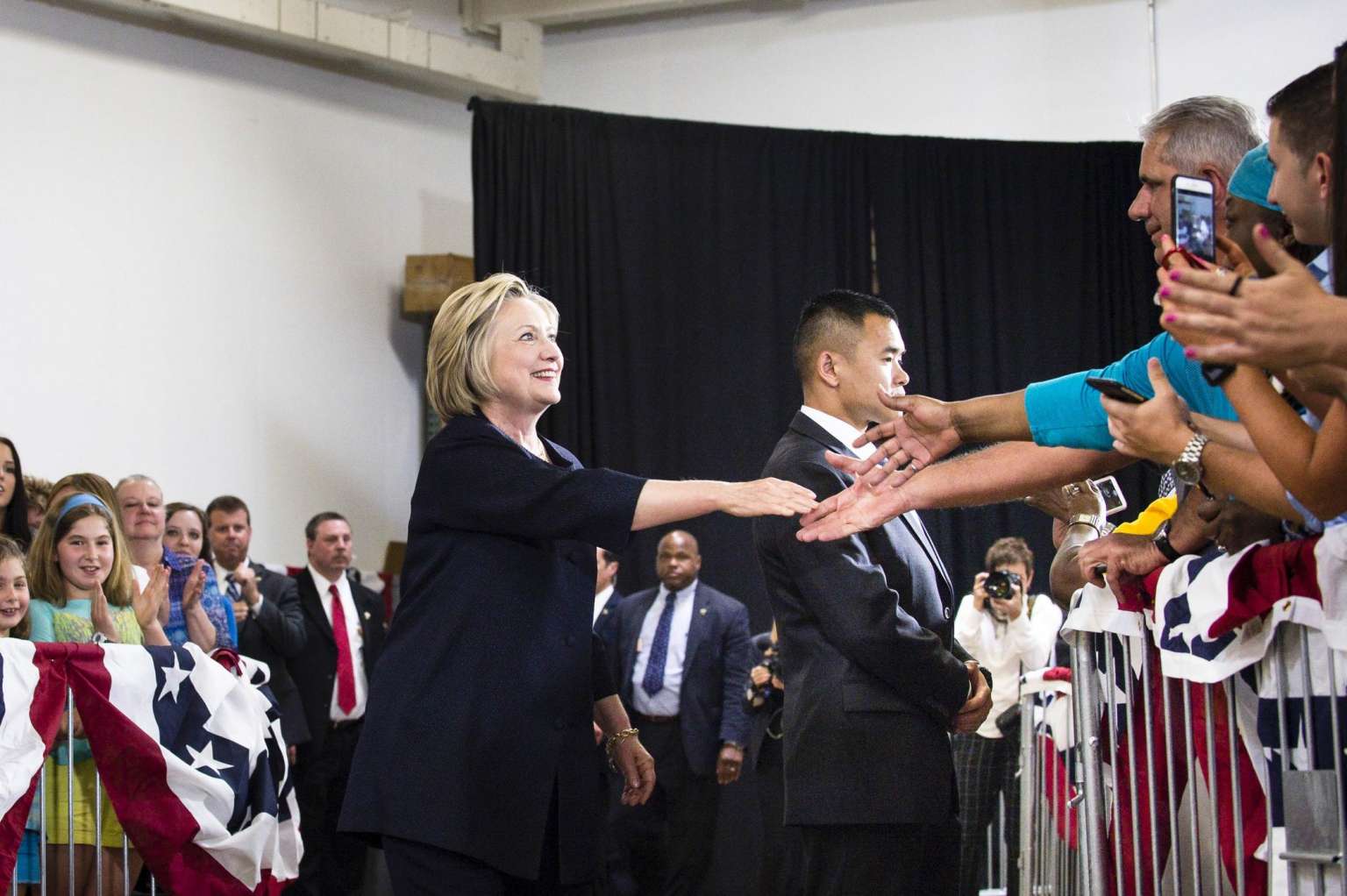 Democratic presidential candidate Hillary Clinton shakes hands with supporters during a campaign stop, on June 13, 2016, in Cleveland, Ohio.