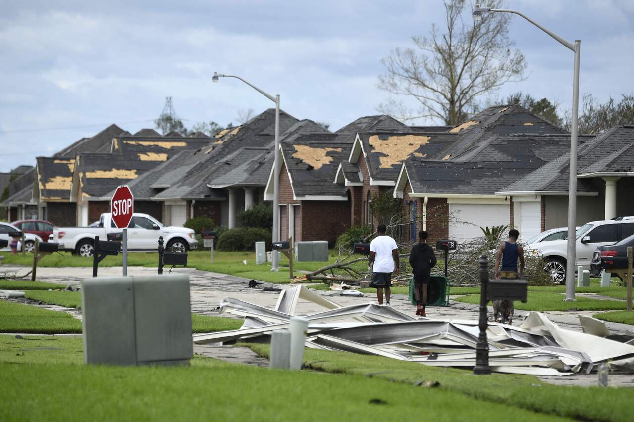 People look at debris damage after Hurricane Ida made landfall in LaPlace, Louisiana, on Aug 30, 2021.