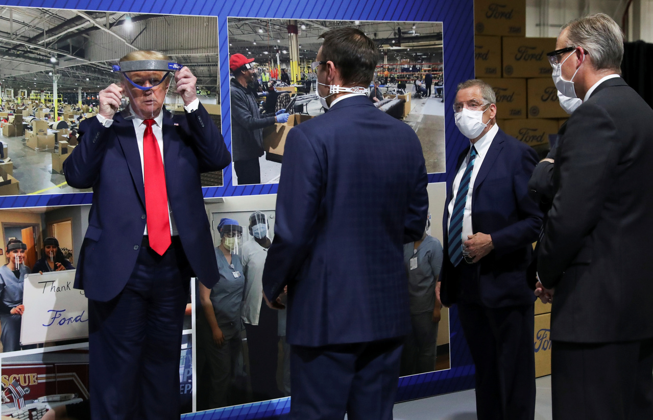 US President Donald Trump during a tour of a medical supplies plant in Ypsilanti, Michigan, on May 21, 2020.