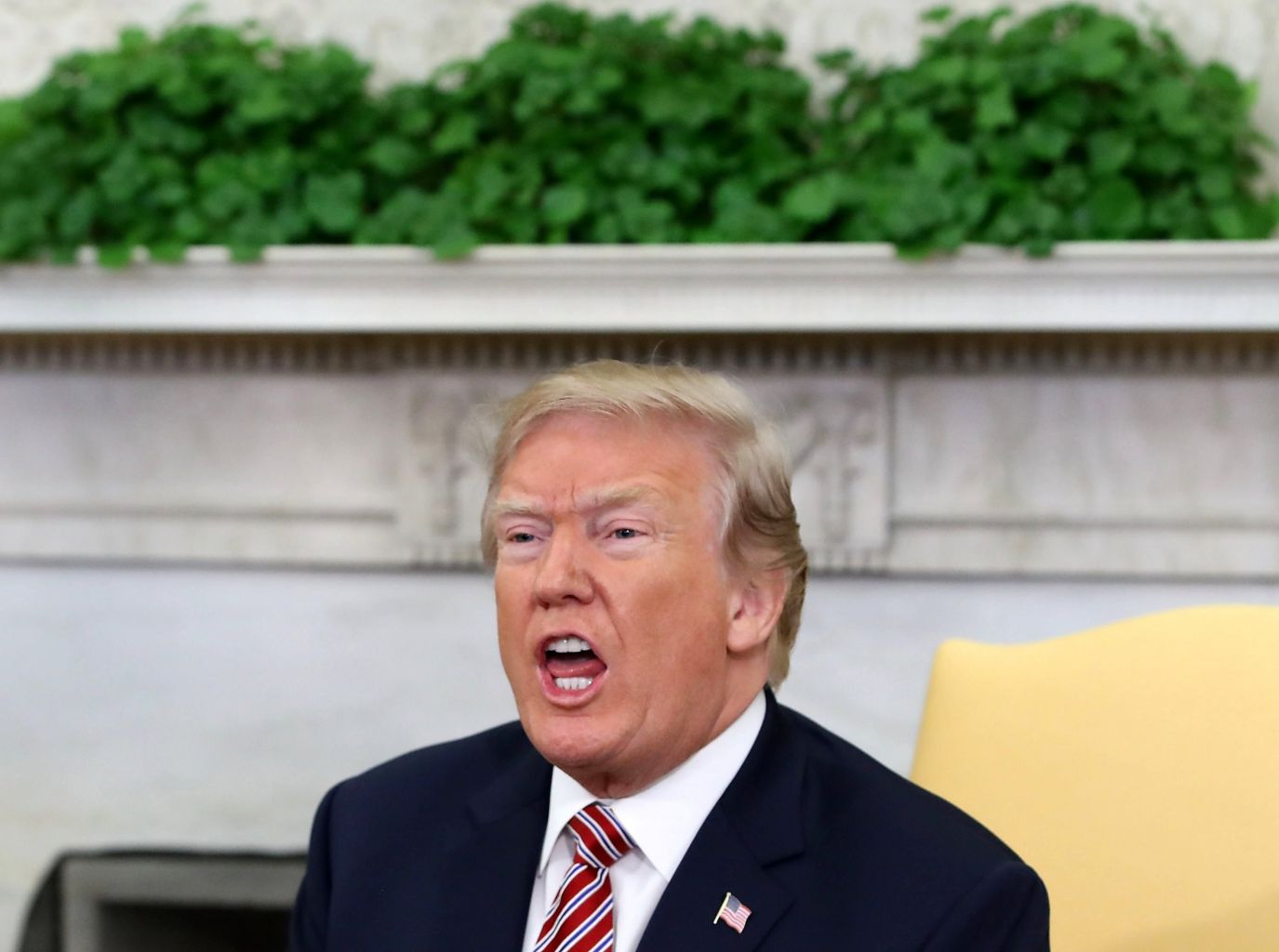 Trump speaking during a meeting with the Emir of Qatar at the White House, April 10, 2018.