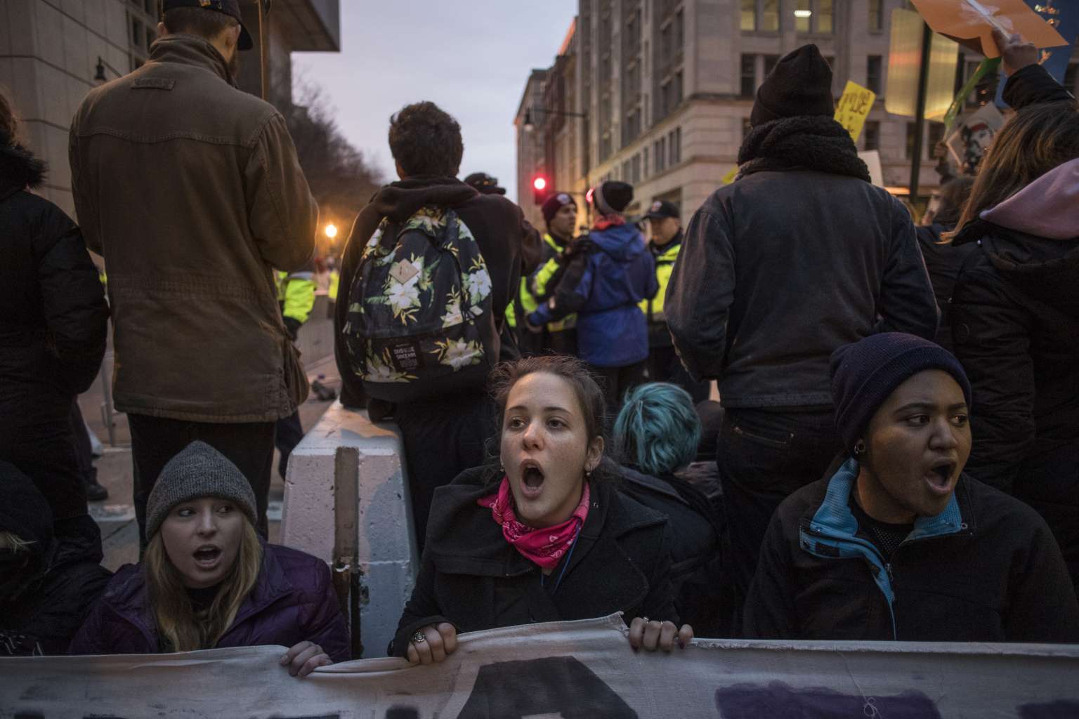 Protesters attempting to block an entrance to the National Mall as they rally against the inauguration of Donald Trump.