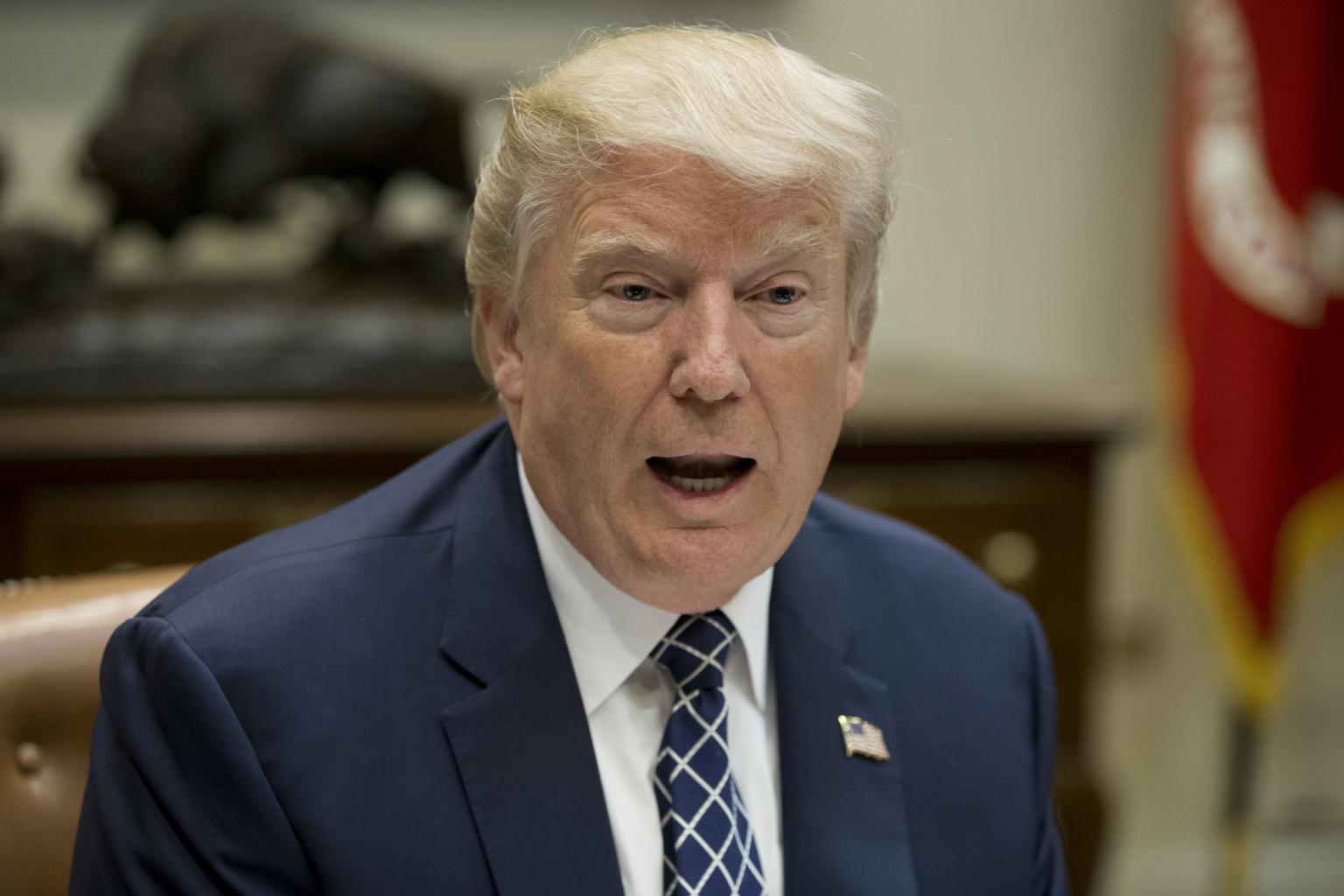 US President Donald Trump attends a meeting with service members in which he delivered remarks on healthcare and the failed attempt to replace and repeal the Affordable Care Act.