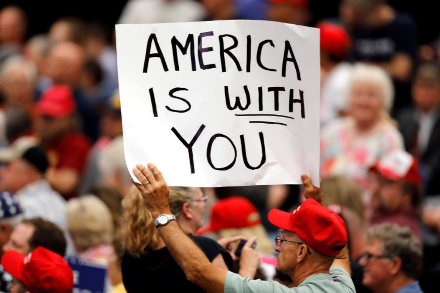 A supporter holds a sign during a rally with President Donald Trump at the US Cellular Center in Cedar Rapids, Iowa, US June 21, 2017.